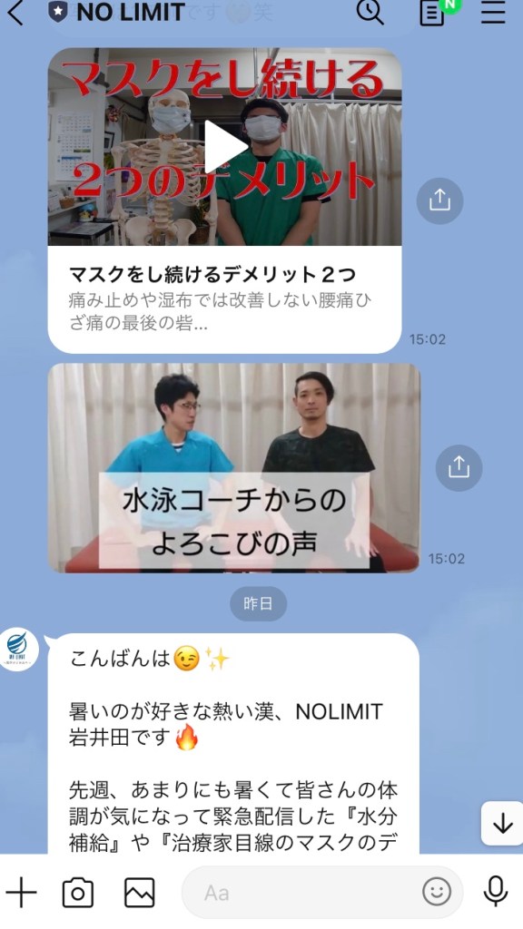 NOLIMITは《治療家×プール》によるタッグで“パフォーマンスアップ”を全力サポートするプロです。全ての事柄に限界を決めず、出来る事を増やして更なる高みを一緒に目指します