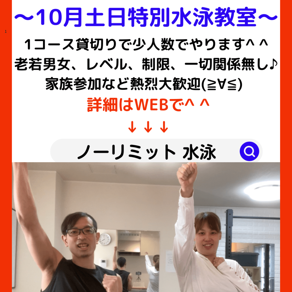 ①10月1日(土)13時〜15時の少人数水泳教室に参加希望