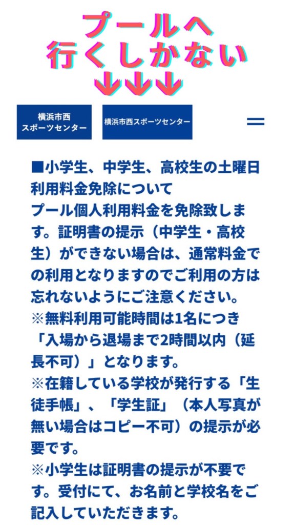 横浜市では土曜日に子ども達にプールを無料解放しています↓↓↓