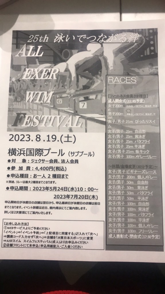 今回はJR東日本スポーツ株式会社さんのオールジェクサー•スイムフェスティバルに参加してきました