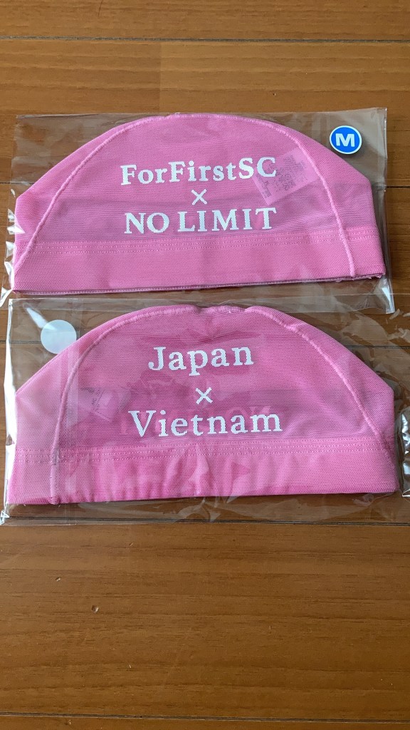 この度、ベトナムで日本式水泳を伝えているFFSCさんとコラボスイムキャップが届きました